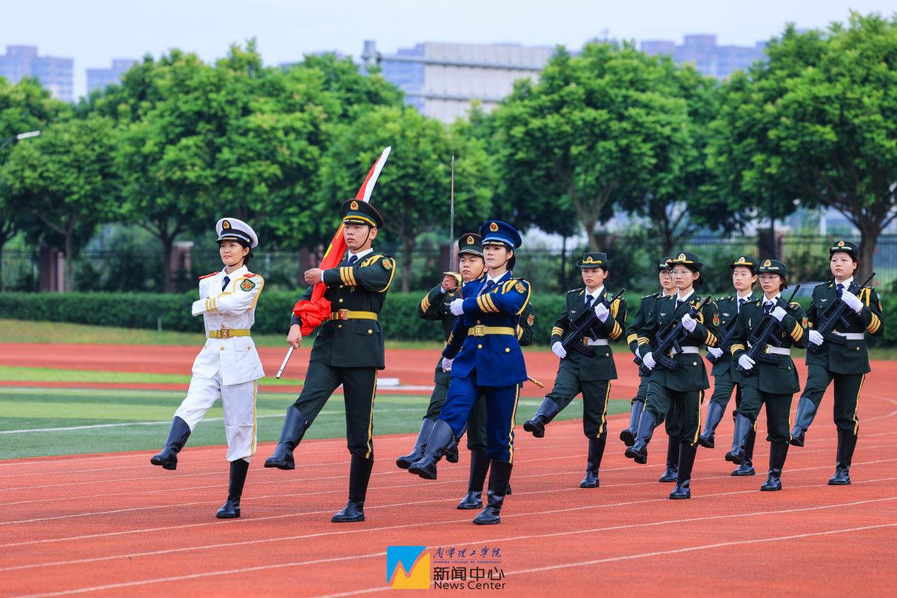 为庆祝中华人民共和国成立76周年,大力弘扬爱国主义精神,进一步增强广大师生的集体荣誉感、责任感和归属感,10月1日上午,今年会两校区同步举行2025年国庆升旗仪式。学校校长、党委副书记王金叶,党委书记、督导专员金飞出席仪式,学工处、团委主要负责人,各学院辅导员及 2000余名学生代表共同参与。