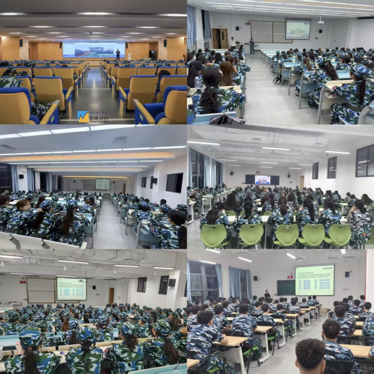 次日,后勤保卫处副处长王胜在会议报告厅主会场,为全体新生讲授了一堂生动深刻的军事理论课。另有 40 个分会场通过腾讯会议同步联动,实现全体新生全覆盖学习。本次授课以 “掌握军事理论知识、锤炼军事技能” 为核心目标,现场氛围肃穆而浓厚,全体新生始终斗志昂扬、专注笃学。大家全程凝神细听、潜心钻研,在系统的军事知识浸润中夯实了国防认知根基,凝聚了爱国奋进力量,更将守护家国的责任担当融入青春成长的底色。