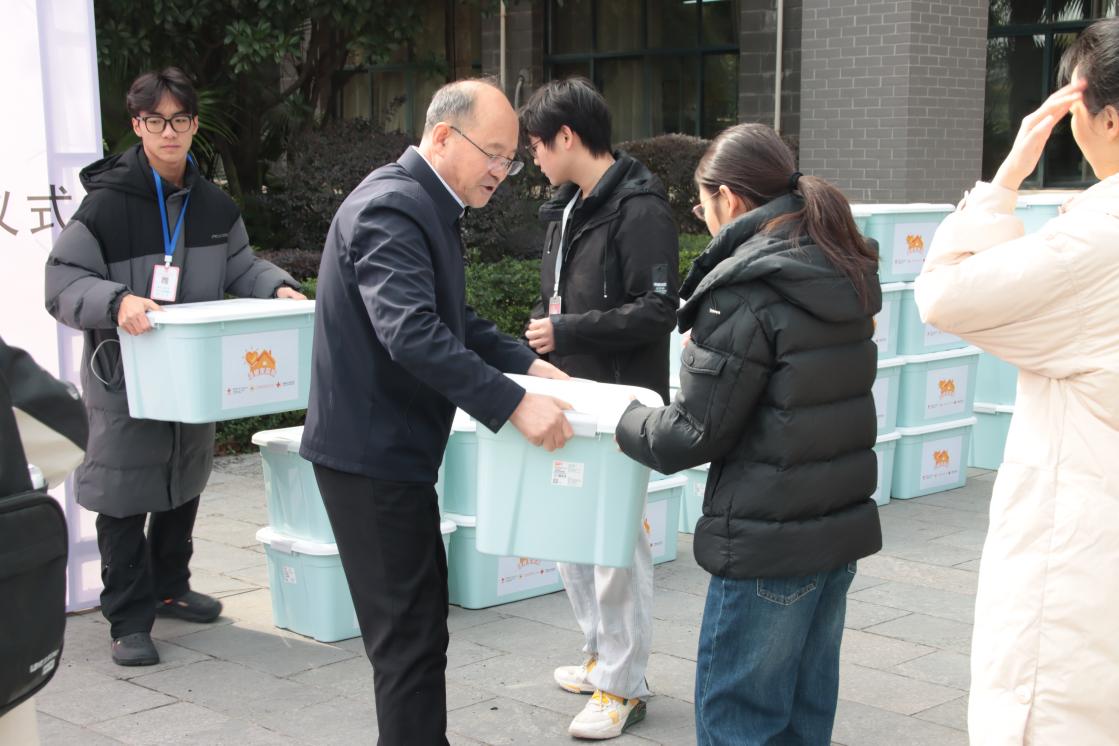 发放环节,出席的校领导为同学们递送“温暖家庭箱”,与学生亲切交流,鼓励大家勇敢追梦、向阳生长。同学们接过沉甸甸的物资,脸上洋溢着感动的笑容,纷纷表示将牢记学校的关怀与嘱托,努力学习、传递爱心。