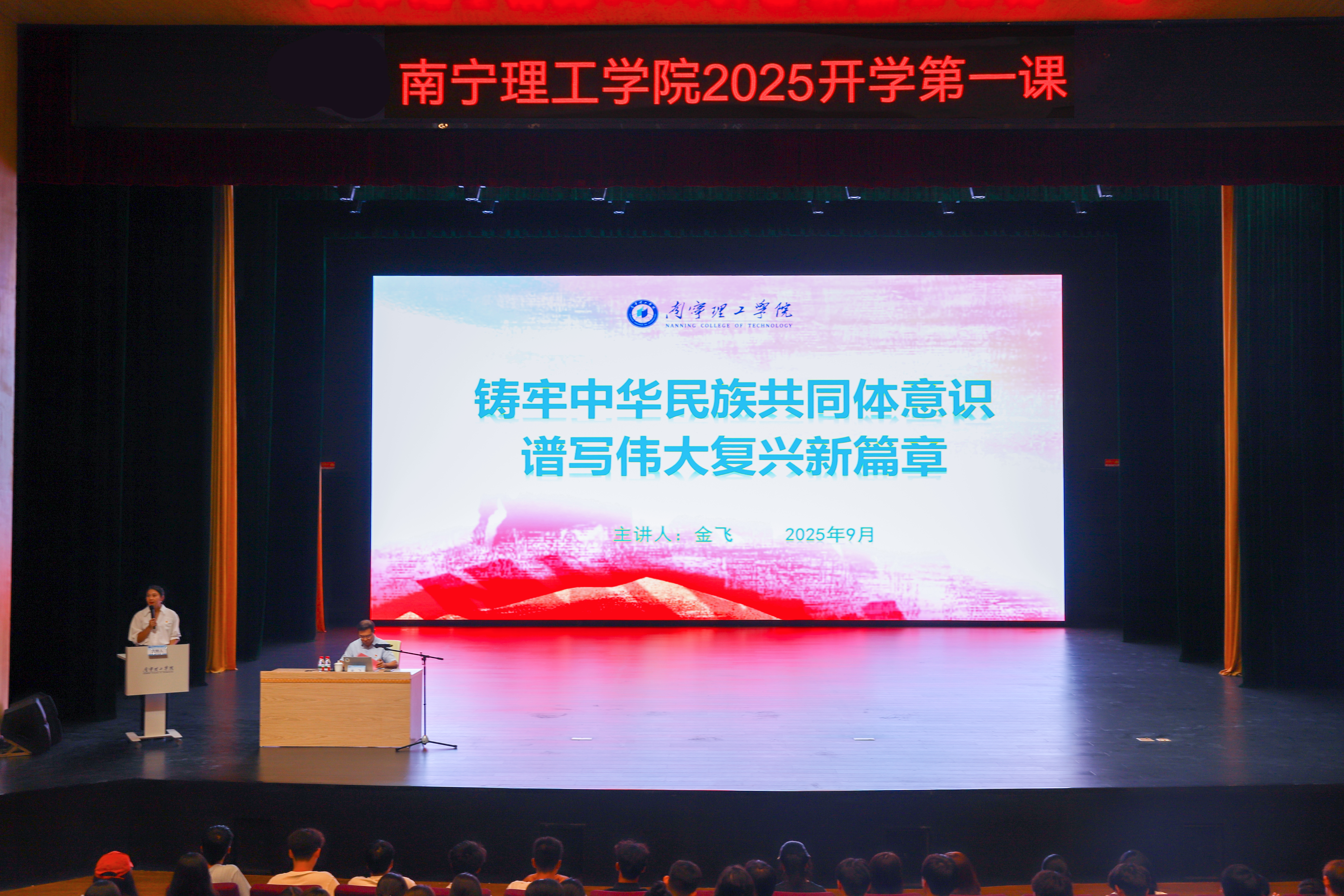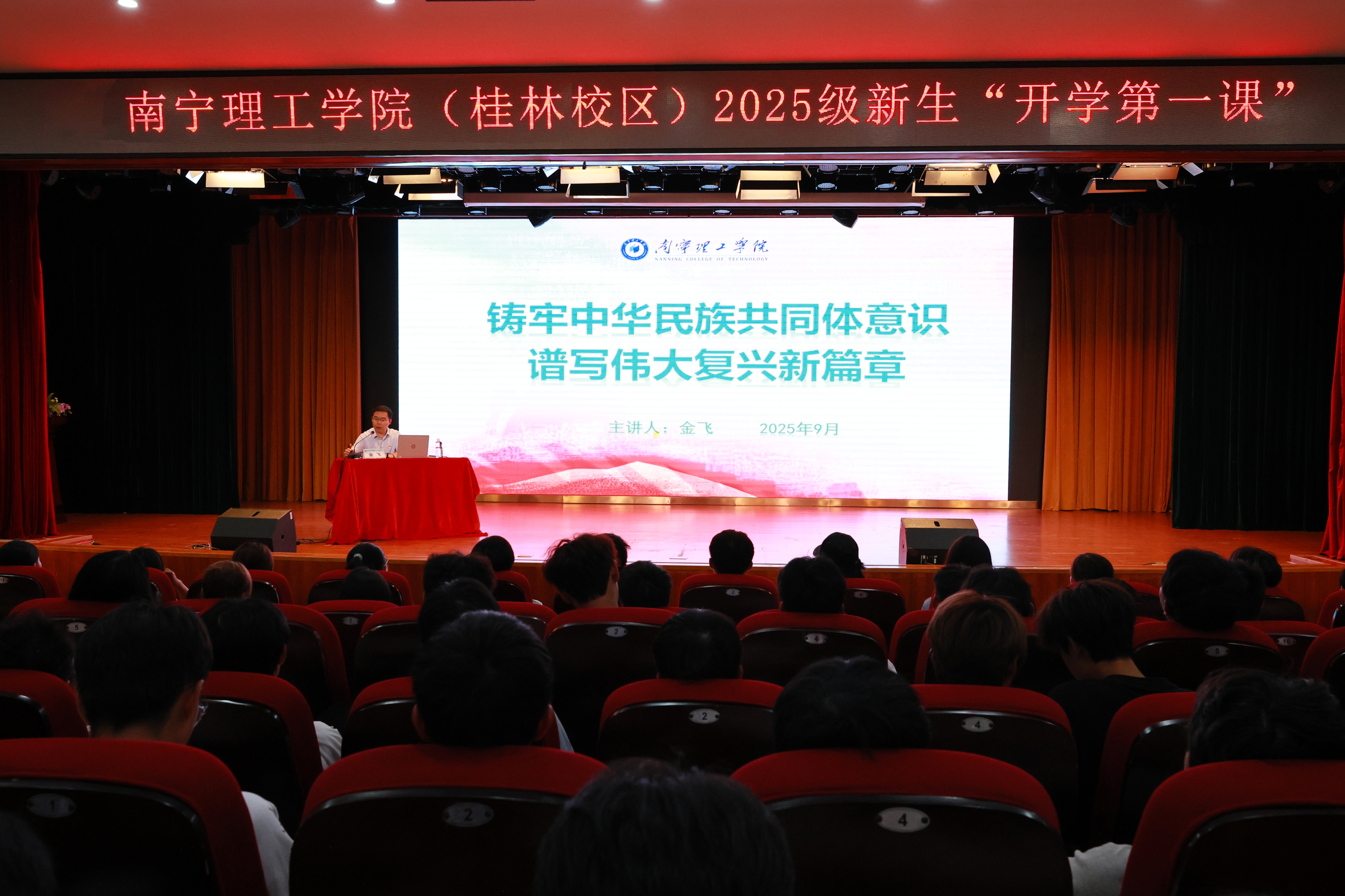 为将党的二十届三中全会精神切实转化为立德树人的生动实践,9月3日与12日,学校党委书记、督导专员金飞分别在南宁、桂林两校区,以“铸牢中华民族共同体意识 谱写伟大复兴新篇章”为主题,为2025级新生讲授“开学第一课”,在“大思政课”的讲台上,奏响了青春与时代同频共振的“第一声号角”。