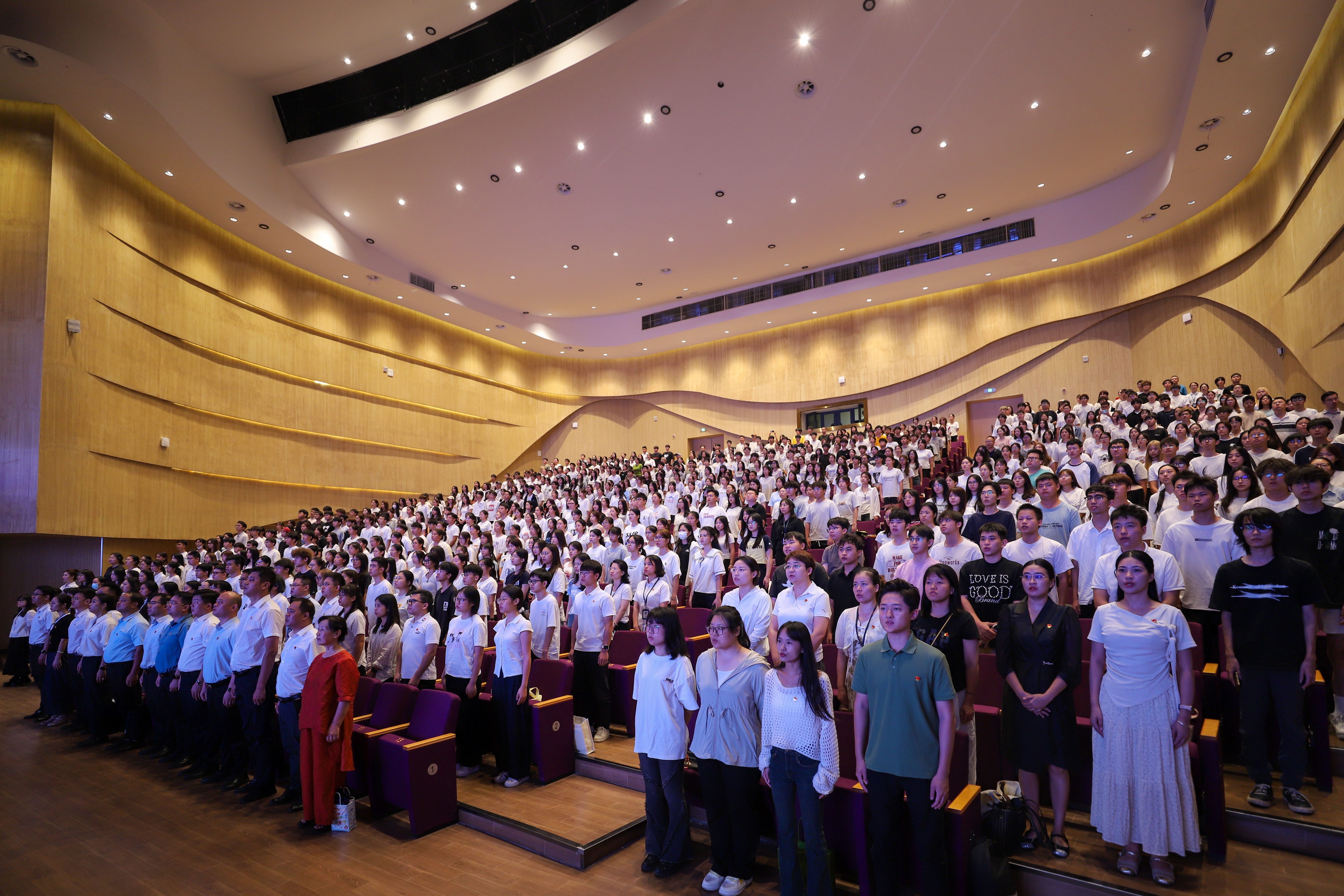 上午9时,jinnianhui今年会校园内洋溢着庄重而热烈的氛围。党员领导干部、教职员工、学生在南宁校区东盟大剧院、桂林校区报告厅及各二级学院会议室、办公室、教室等地收听收看现场直播,共同见证这一庄严时刻。