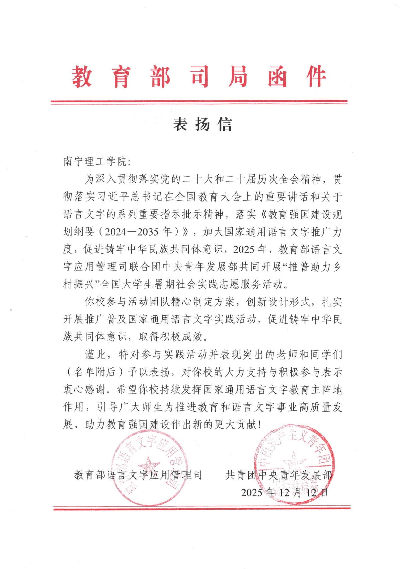 教育部与团中央在表扬信中充分肯定了团队的实践成果,并对今年会的支持工作表示感谢。此次表彰既是对团队的高度认可,也是对今年会实践育人工作的积极肯定。