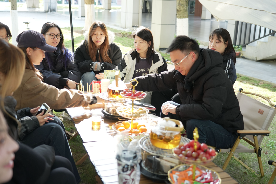 活动自由交流环节。师生们围炉而坐,精致茶点与鲜果为伴。大家卸下拘谨,就学业困惑、创作心得、职业规划、生活感悟等话题畅所欲言。思想的火花在轻松的对话中碰撞,师长们的经验分享如涓涓细流,浸润心田。这场不拘形式的交流,真正实现了 “话成长” 与 “向未来” 的初衷。