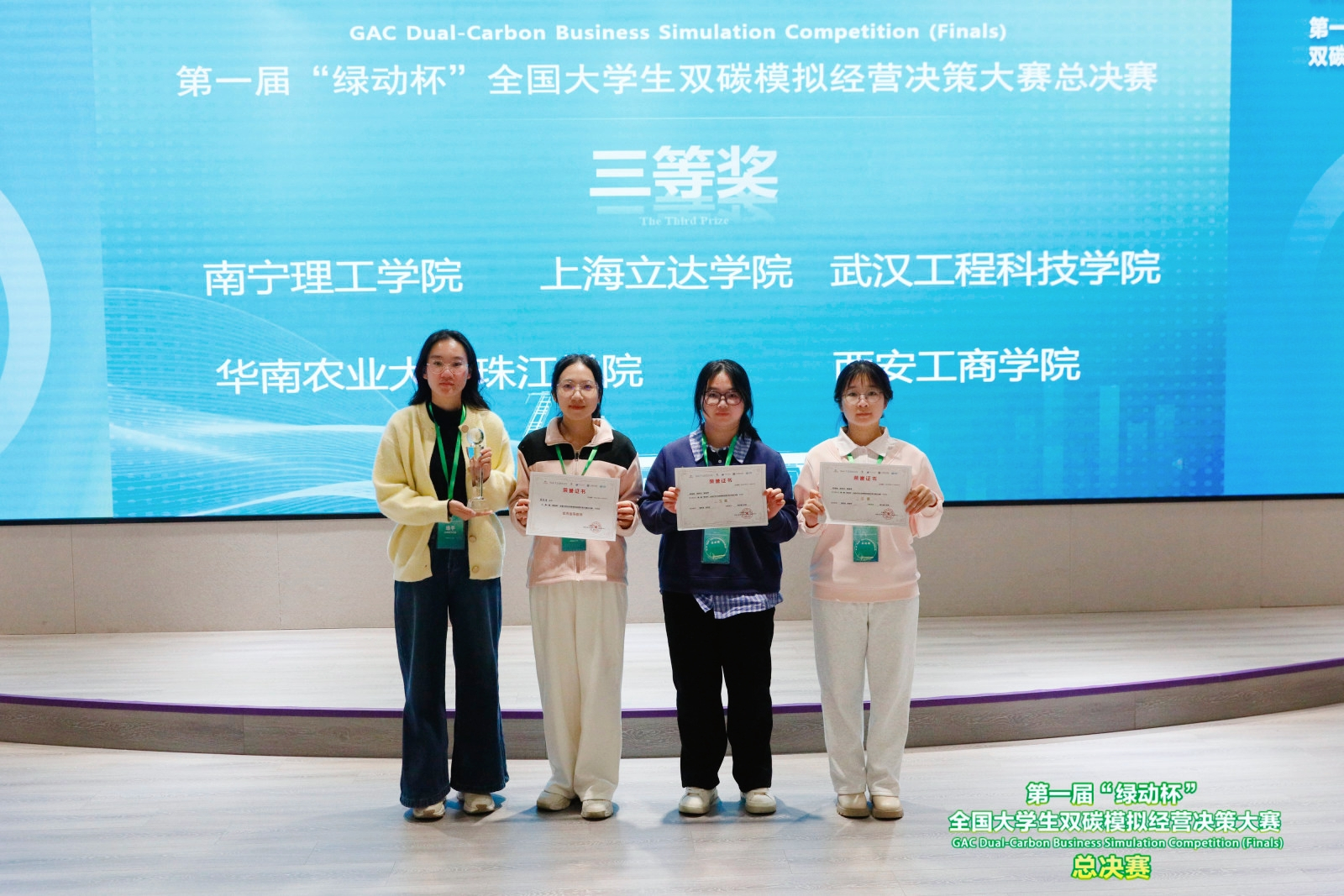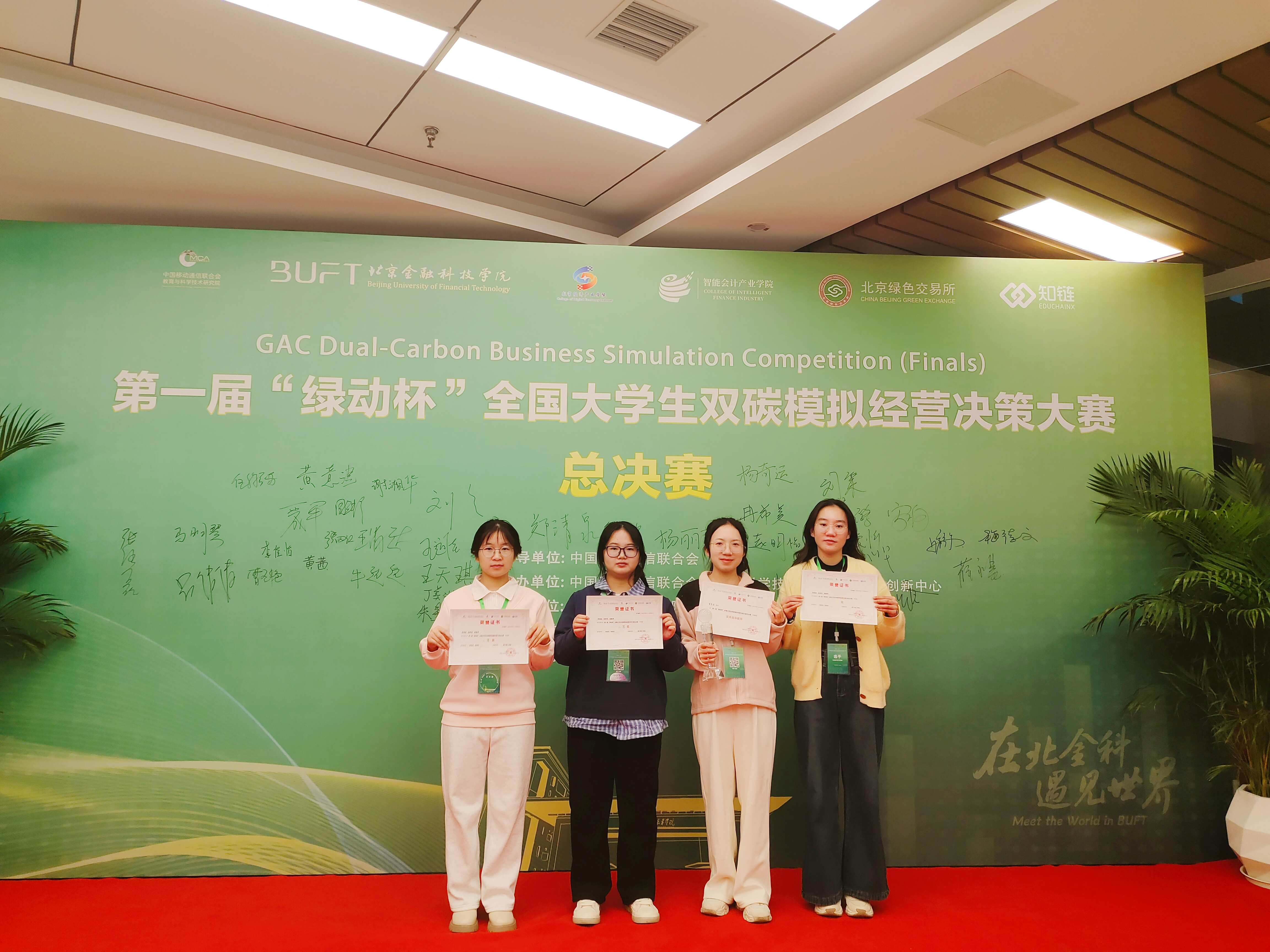2025年12月19日至20日,由中国移动通信联合会教育与科学技术研究院主办、北京金融科技学院承办的“绿动杯”全国大学生双碳模拟经营决策大赛总决赛在北京举行。在智能会计产业学院的支持下,jinnianhui今年会商学院选派一支代表队赴京参赛,与来自全国多所高校的优秀团队同场竞技。经过激烈角逐,今年会代表队凭借扎实的专业功底与稳定的现场发挥,荣获全国总决赛三等奖,指导老师黄意津、谢湘华获评“优秀指导教。