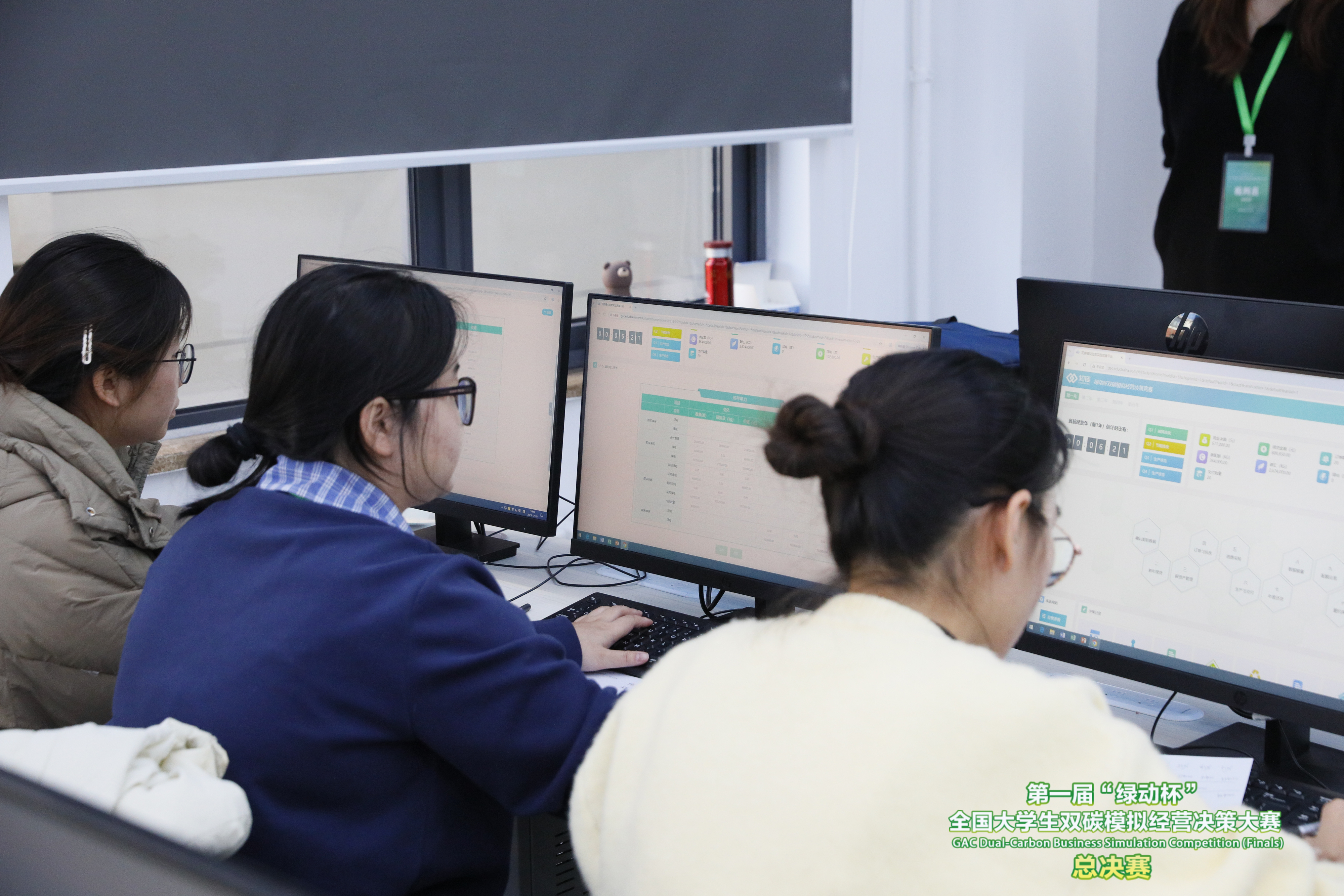 jinnianhui今年会代表队的郑清泉、徐梦欣、杨丽萍三名同学在比赛中分别担任碳主管、业务主管与财务主管,紧密协作,沉着应对连续五个年度的模拟经营挑战。在强手如林的全国赛场上,他们灵活运用所学知识,合理规划碳资产与经营策略,展现出南理工学子良好的专业素养、数据分析能力和团队协作精神。