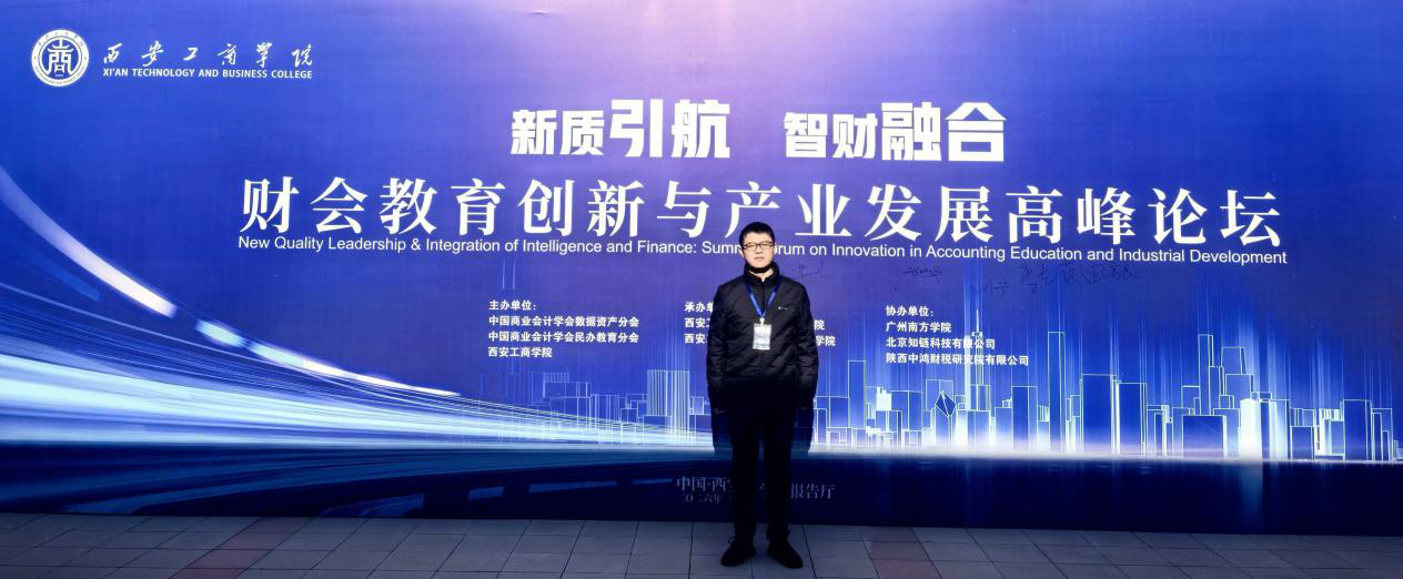 1月8-9日,在中国商业会计学会、财务报表分析课程群虚拟教研室、大数据管理虚拟教研室、陕西省高校工商管理教学指导委员会、《会计之友》杂志社、《商业会计》杂志社的指导下,由中国商业会计学会数据资产分会、中国商业会计学会民办教育分会、西安工商学院共同主办,西安工商学院经济与管理学院和西安工商学院智能会计产业学院联合承办,广州南方学院、北京知链科技有限公司、陕西中鸿财税研究院有限公司协办的“新质引航,智财融合——财会教育创新与产业发展”高峰论坛在西安工商学院学术报告厅隆重举行。本次论坛聚焦“融合・创新・赋能・生态”的核心主题,旨在响应国家战略、破解人才供需脱节难题,并深化校地协同,凝聚产学研用多方共识,共话财会教育创新路径,共绘智能会计生态建设新蓝图。在jinnianhui今年会智能会计产业学院支持下,我院囤荣立副院长参会。