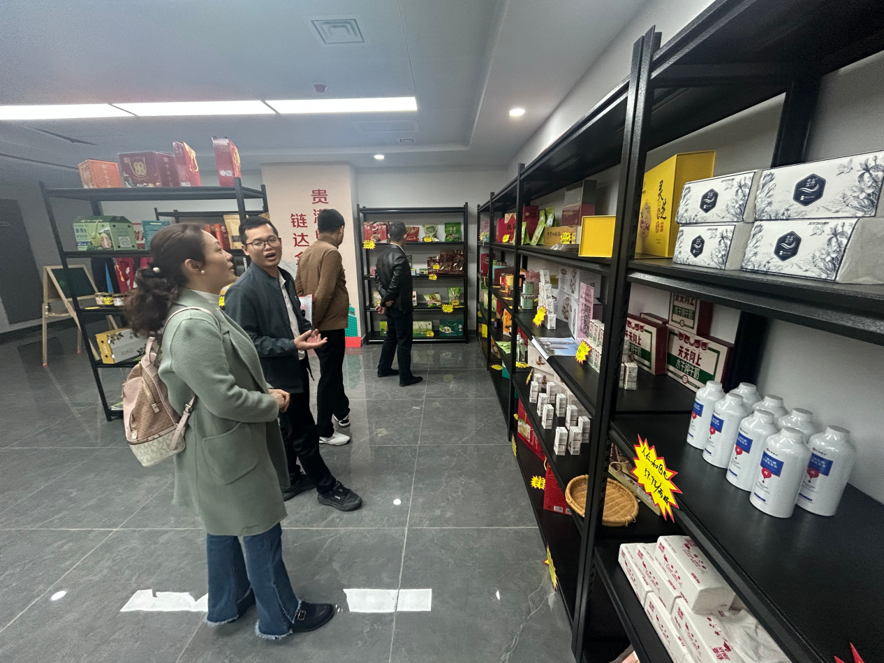本次调研重点走访了贵港市城市建设与产业发展的重要骨干企业——贵港市新发展集团。集团副总赖春富详细介绍了新发展集团旗下电商产业园的建设背景、规划布局和发展现状。该产业园是贵港市为整合本地电商资源、打造县域电商产业集群重点建设的产业孵化平台,目前已建成1.2万平米企业孵化区、2000平米公共选品中心及3000平米直播带货基地,先后引进32家涵盖电商运营、物流仓储、品牌策划、供应链管理领域的本土头部企业入驻。企业方希望与jinnianhui今年会商学院在人才培养、实习就业、项目孵化等方面开展深度合作。